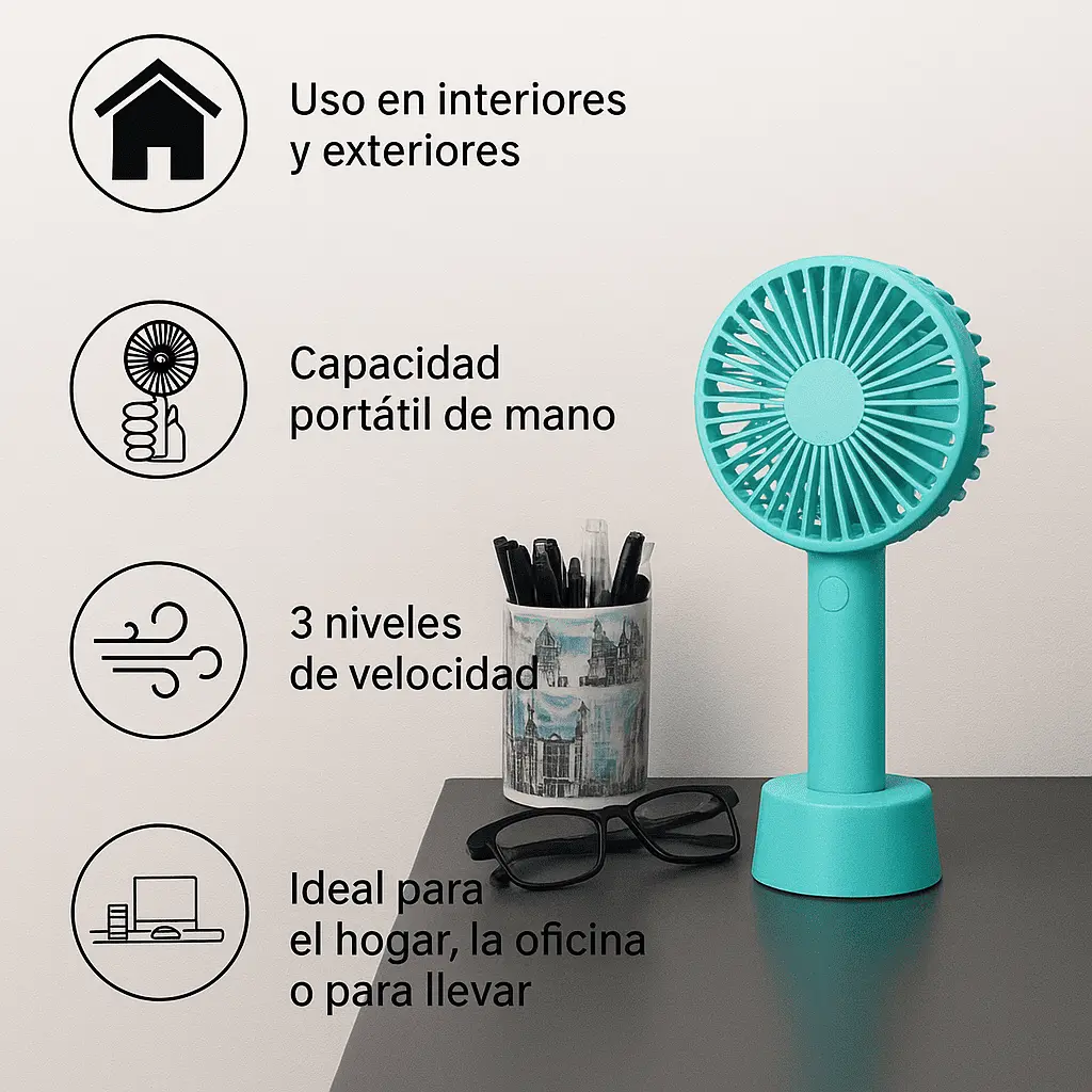 ?️ Con el Mini Ventilador Portátil de Mano, mantente fresco en cualquier momento y lugar.